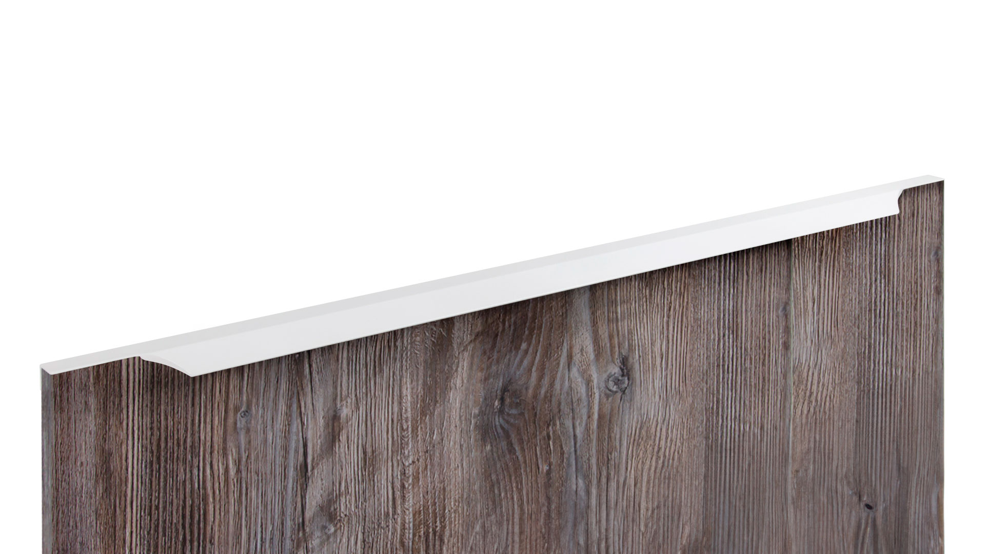 WING RT114 — торцевая ручка с изгибом из алюминия, устанавливается наложением на фасады толщиной 18,8 мм (в цветах BL,GR,SC,SG) и 18,5 мм (в цвете W).