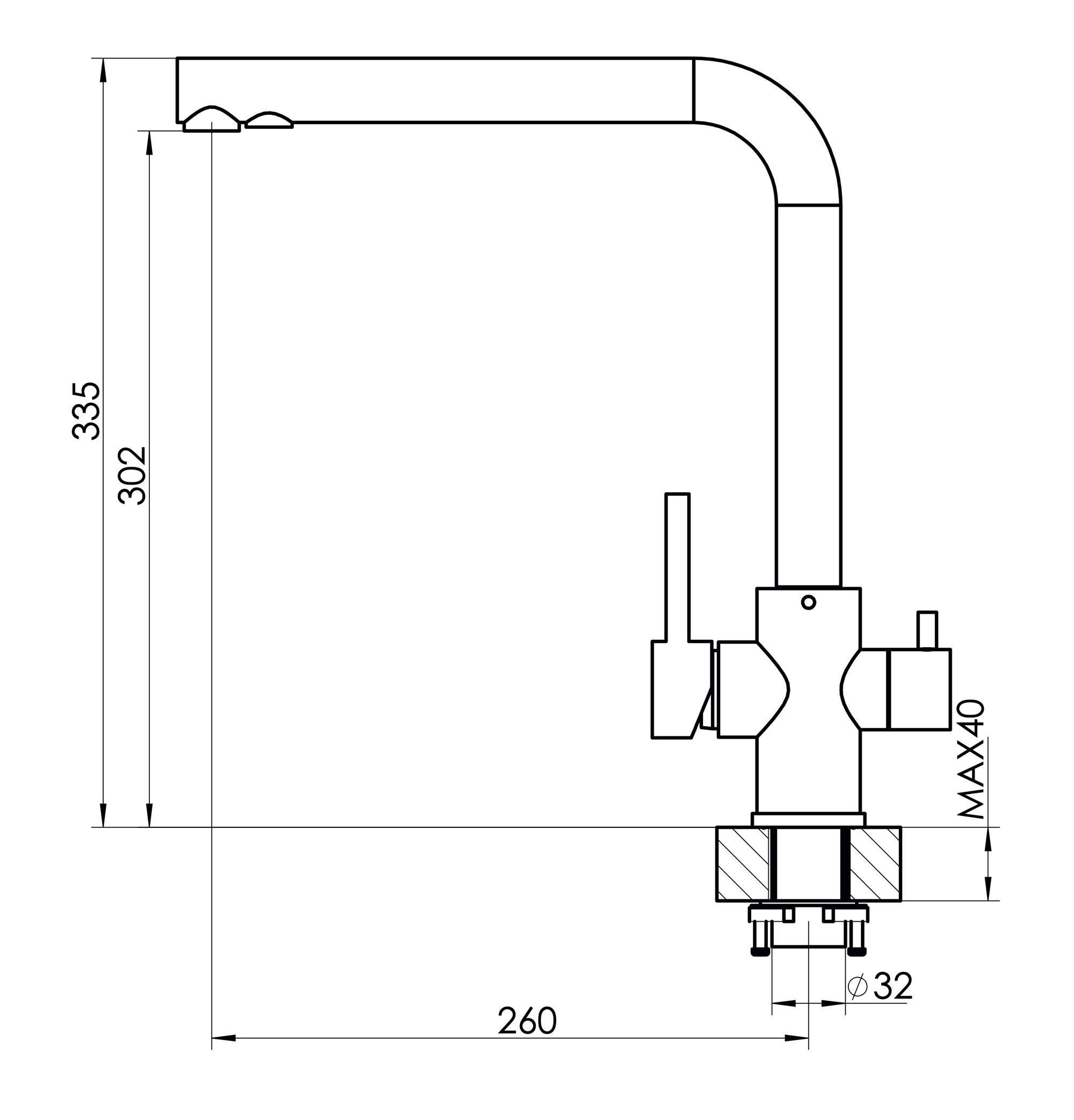 - Высота излива, мм 302