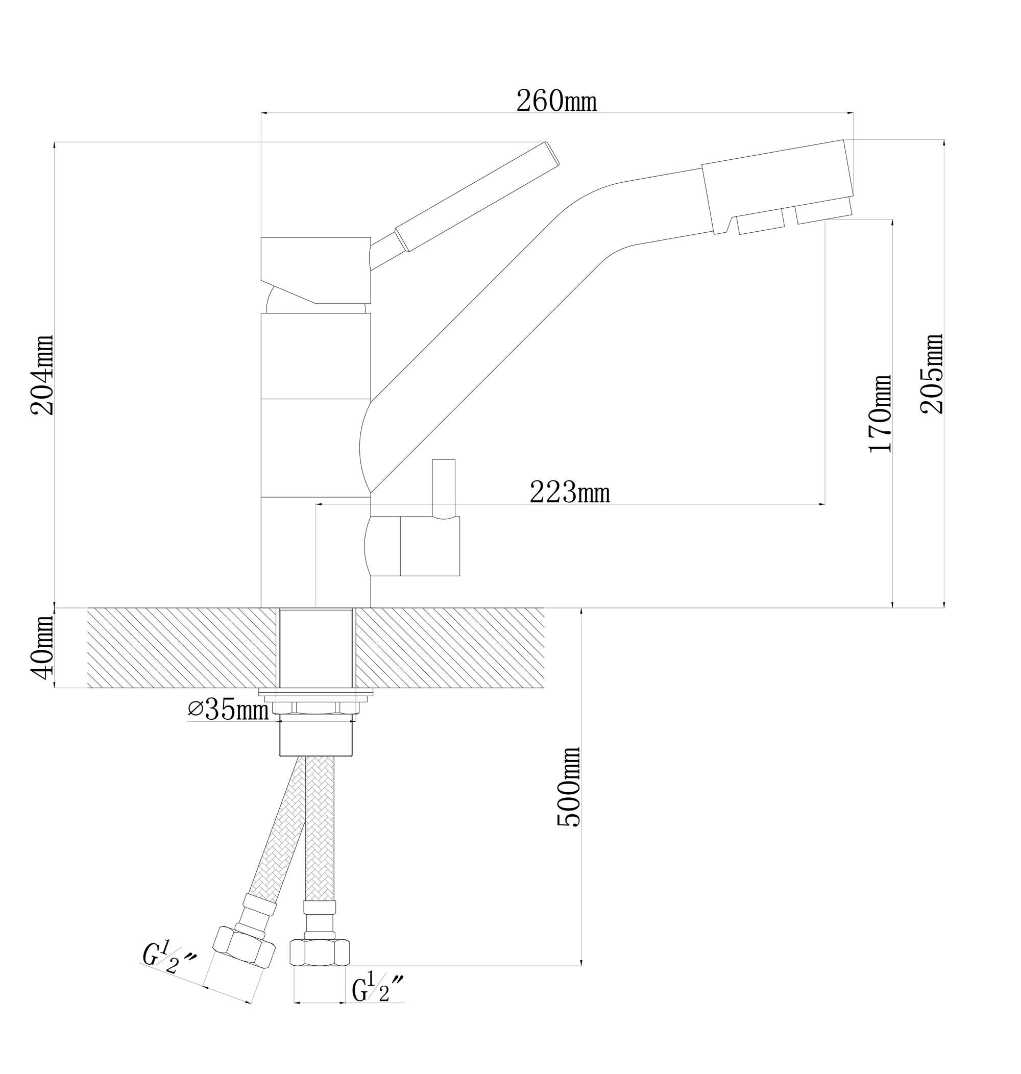 - Высота смесителя, мм 204