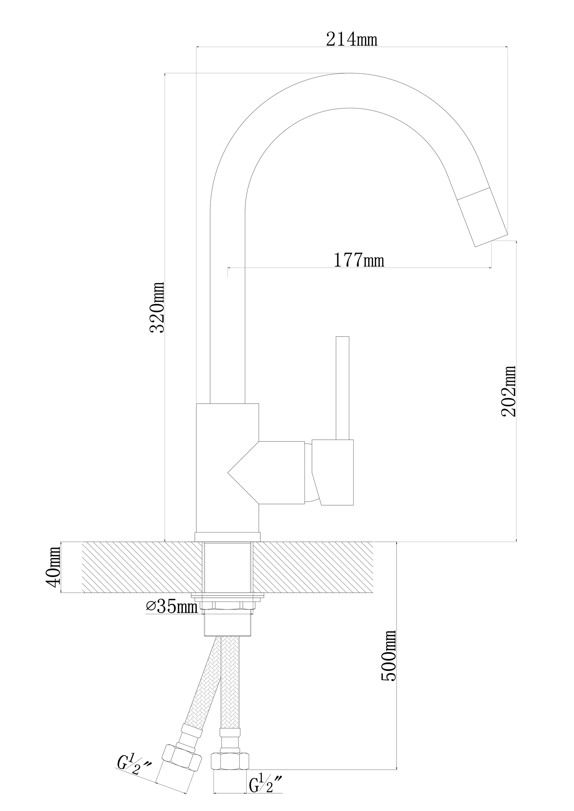 - Высота смесителя, мм 320