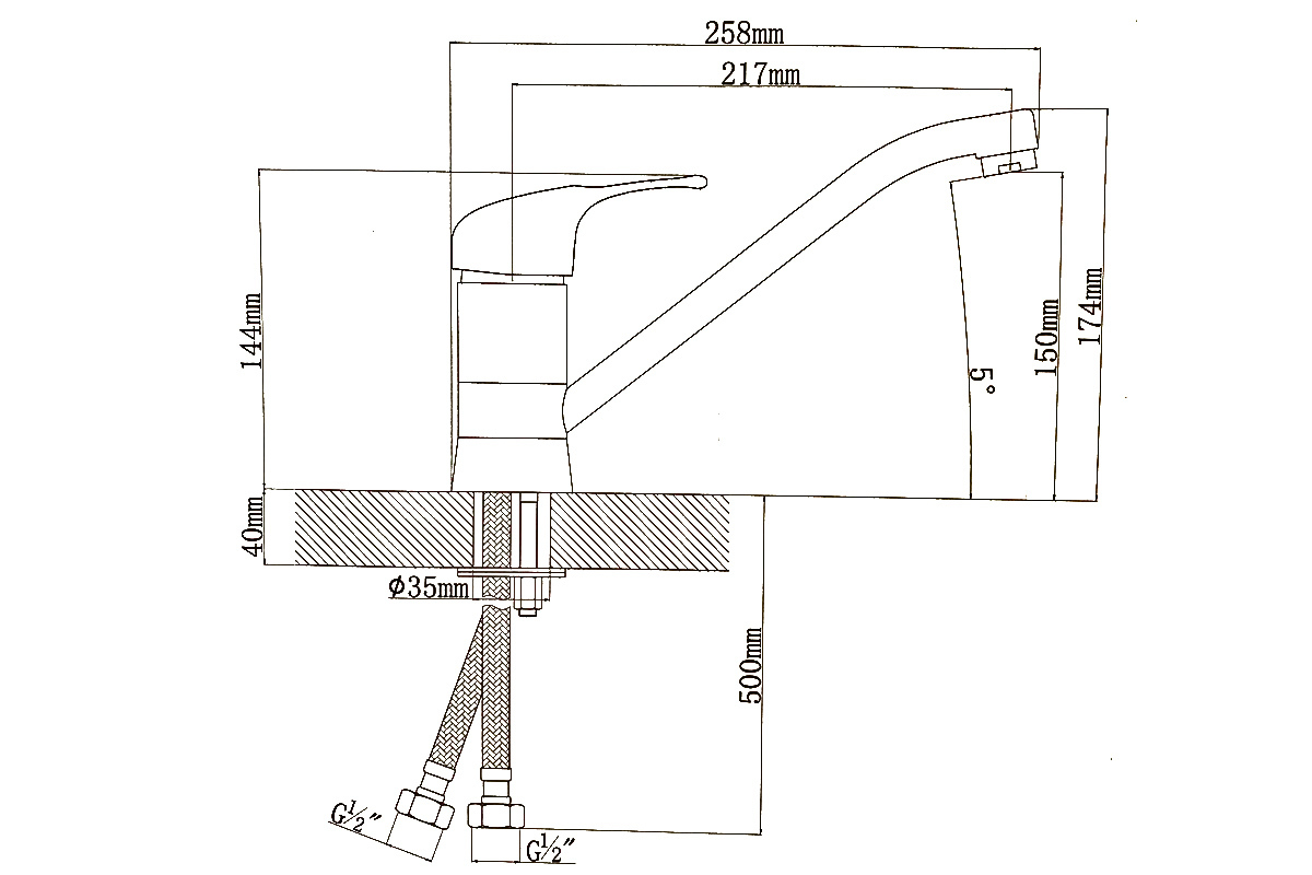 - Высота смесителя, мм 174