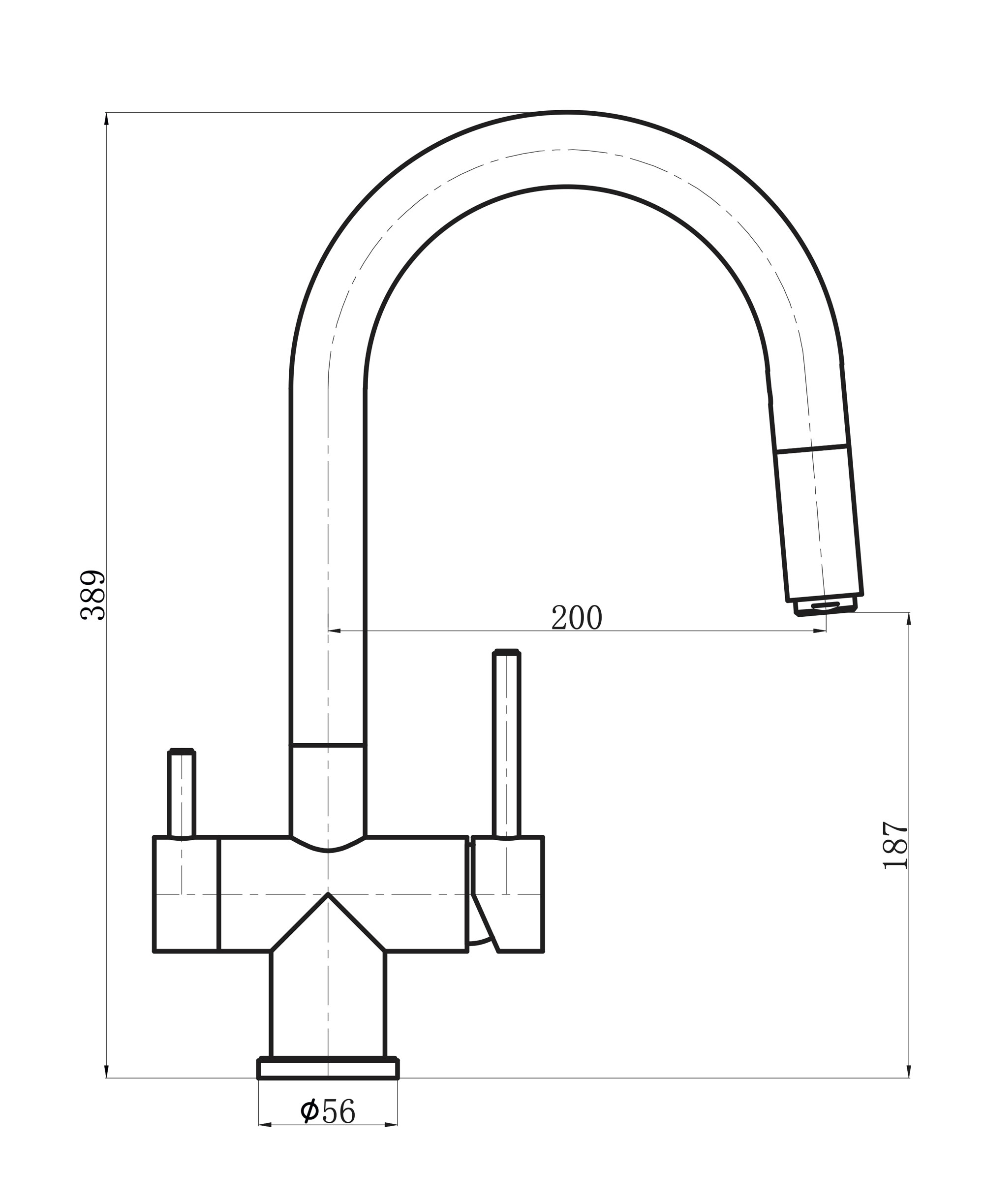 - Высота смесителя, мм 389