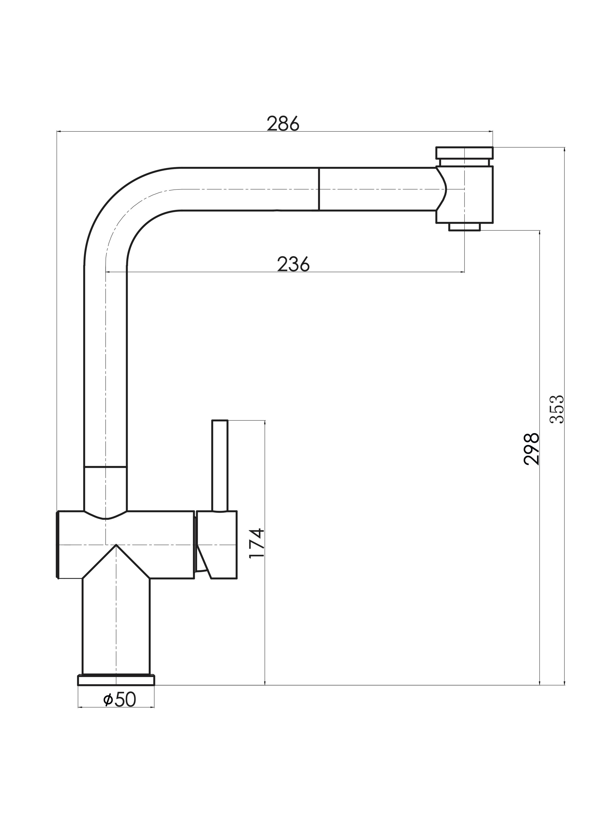 - Длина излива, мм 236