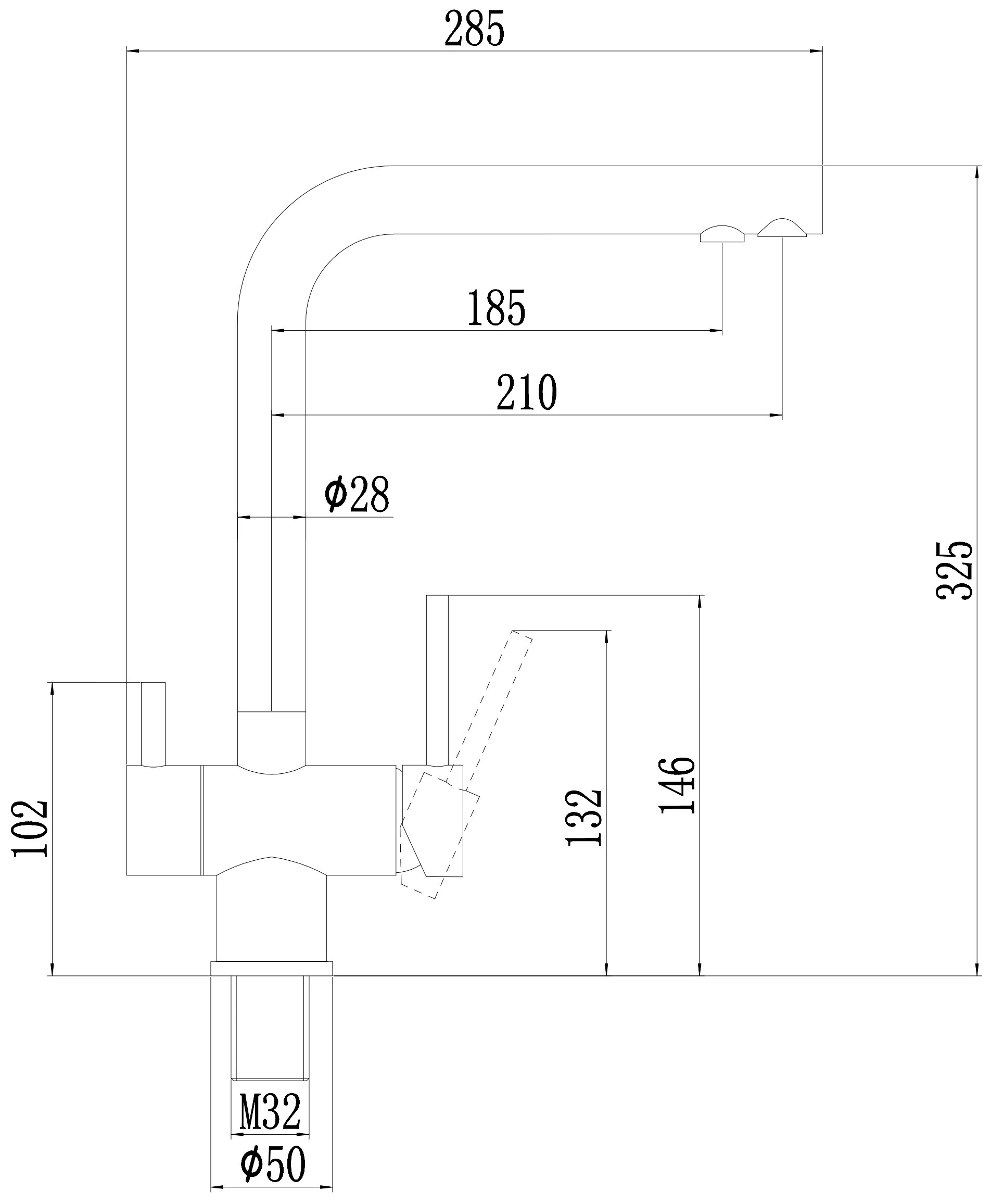 - Высота излива, мм 325
