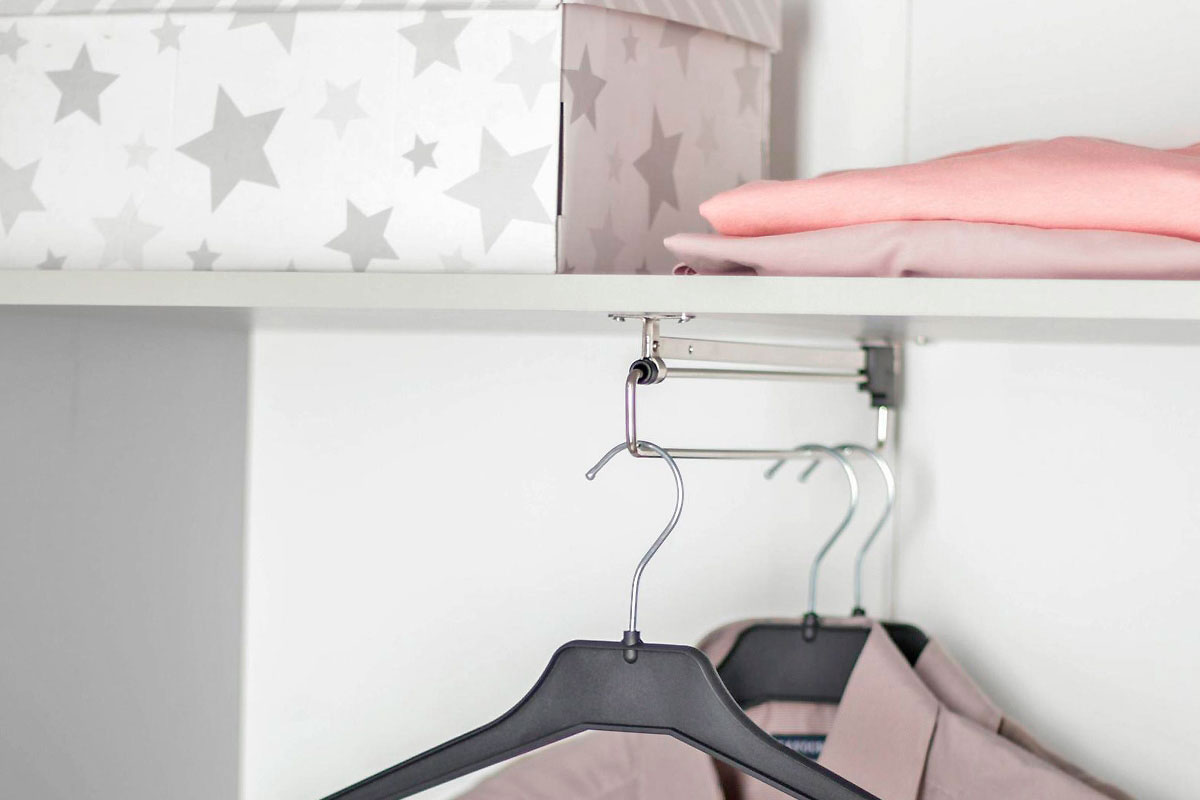 Выдвижная штанга является практичным решением для неглубоких шкафов.