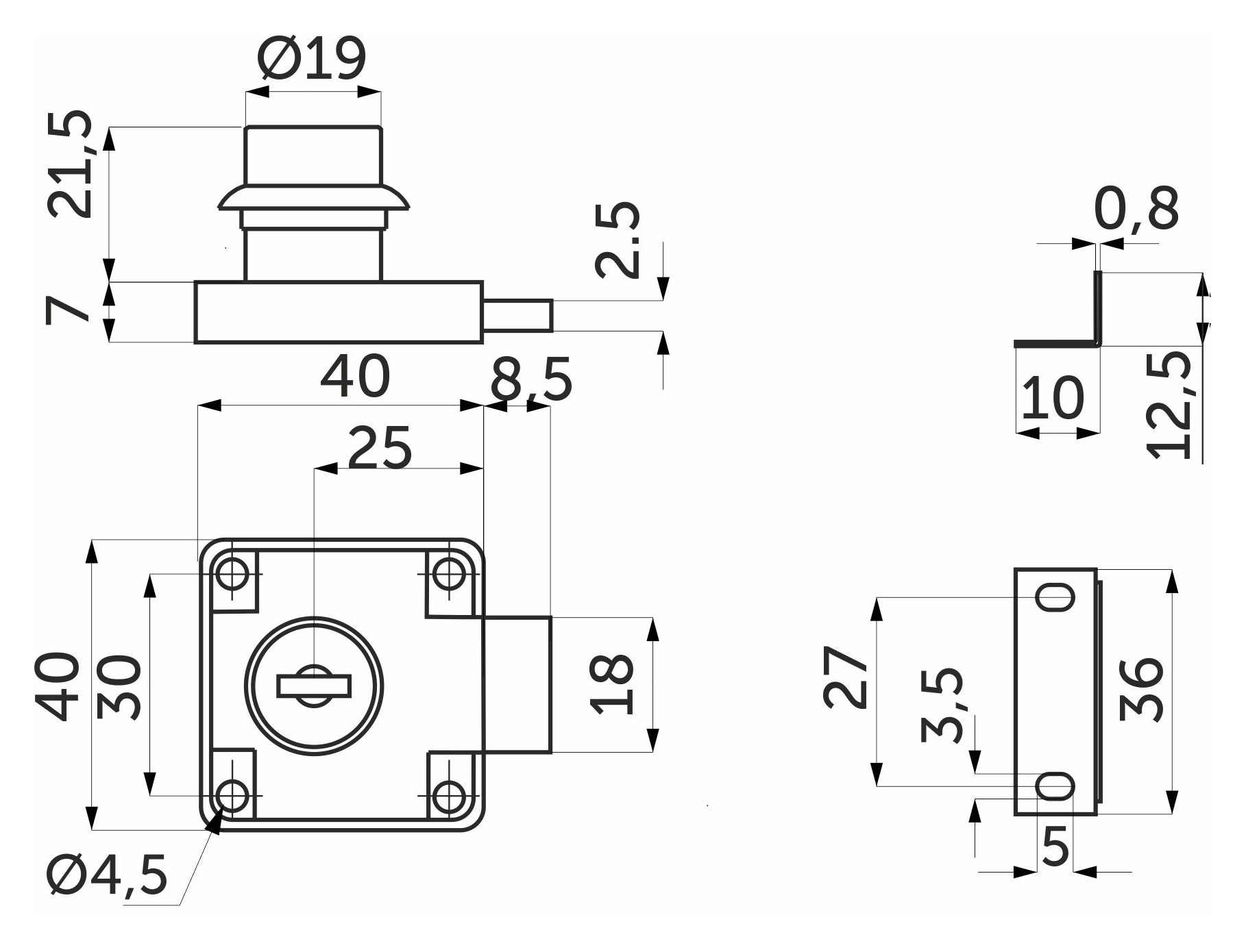 Данная модель является наиболее популярной среди мебельных замков. Замок предназначен для деревянных, ЛДСП, МДФ - фасадов толщиной 16-18 мм.