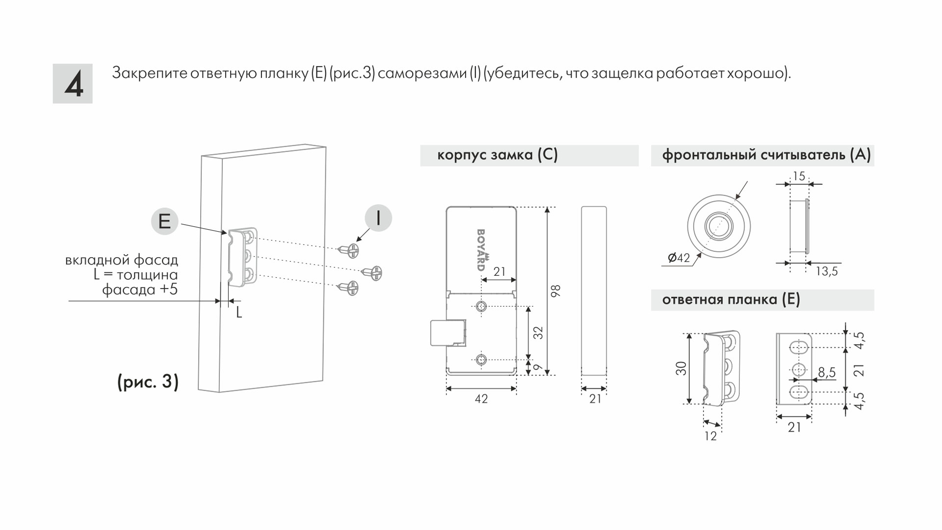 - планка для крепления фронтального считывателя (1 шт.)