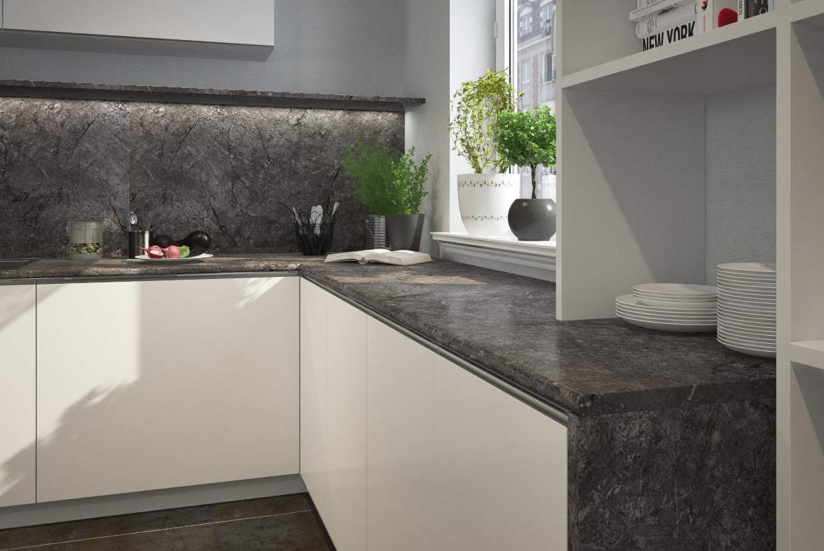 Столешница Кедр 3025/Q Мрамор Чёрный, R3, 1U, 3050х600х40