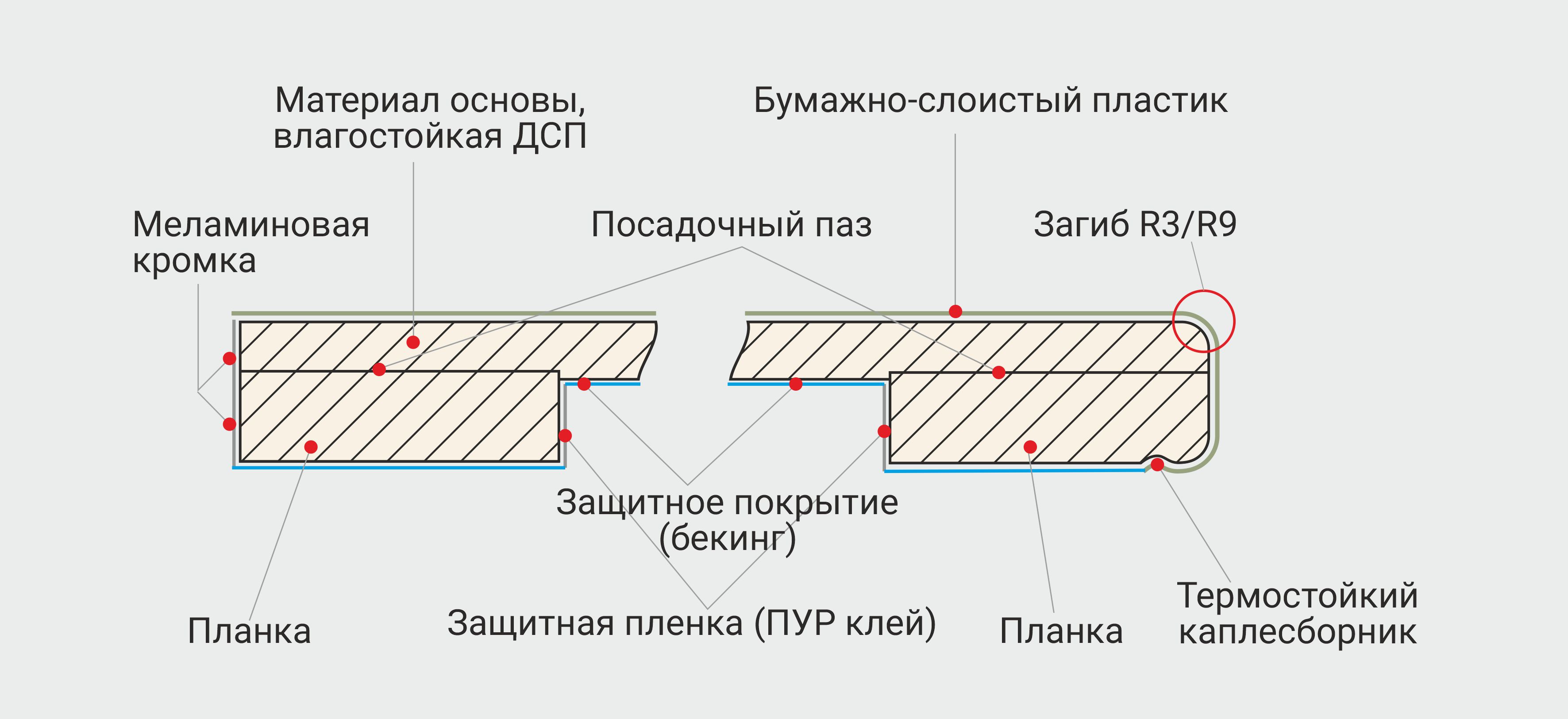 Столешница Кедр Profstandard 0449/CK Альпийский Шифер Тёмный, R9, 1U, 3000х600х56