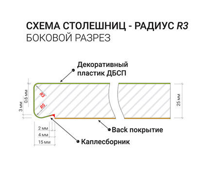 Столешница Кедр 521/PW Берёза Сандал, R3, 1U, 3050х600х27