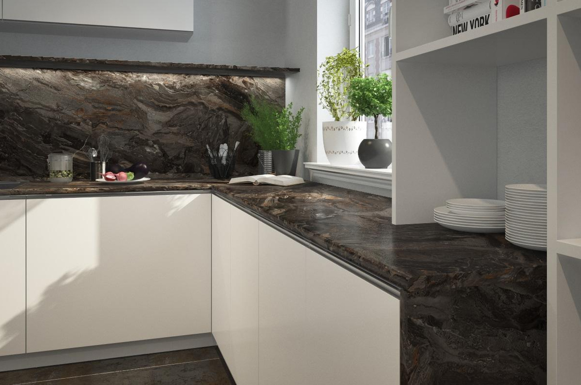 Столешница Кедр 7032/Q Мрамор Бергамо Тёмный, R9, 1U, 3050х600х40