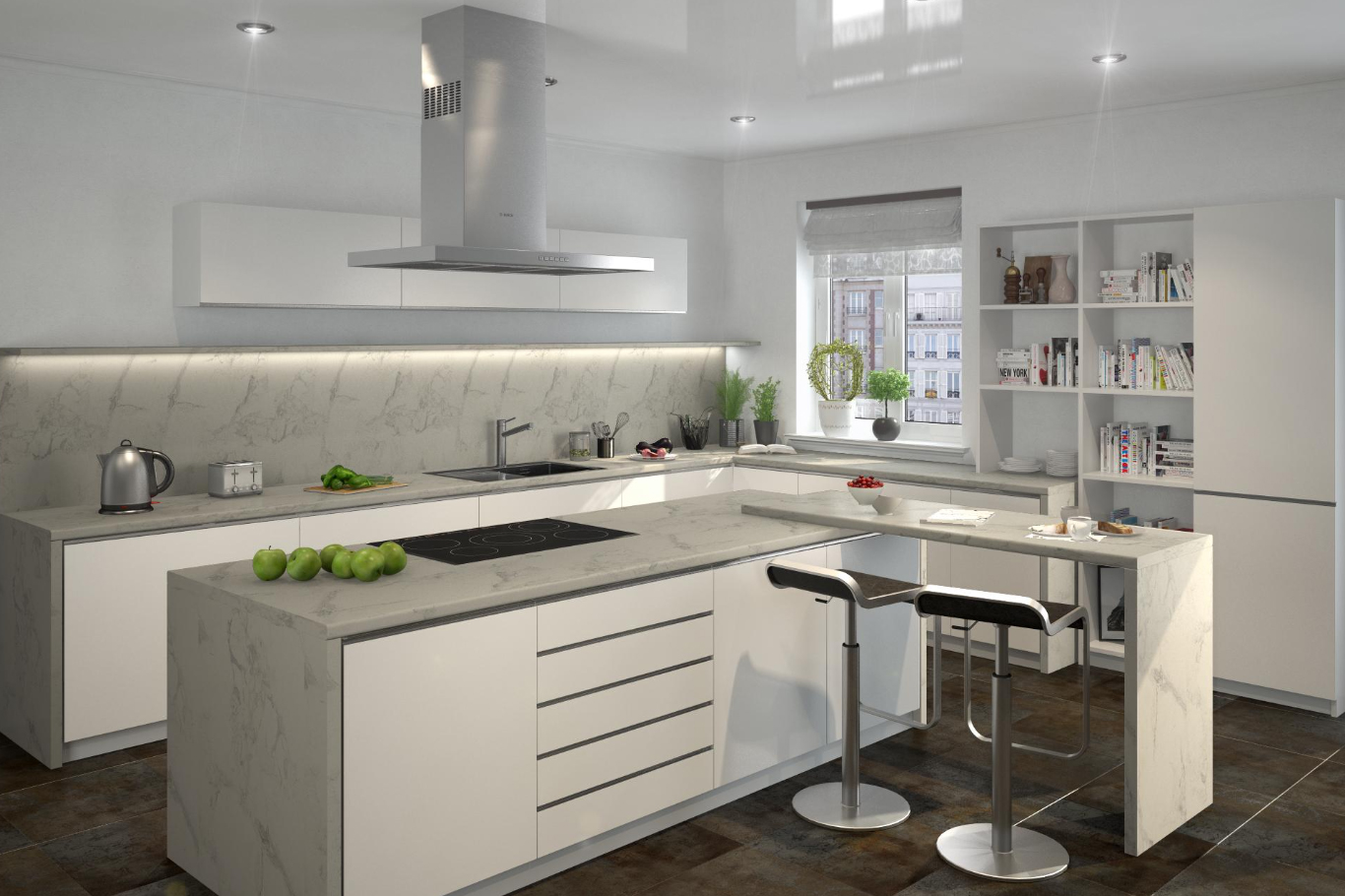 Столешница Кедр Profstandard 2349/PT Мрамор Бернини, R9, 1U, 3000х600х38