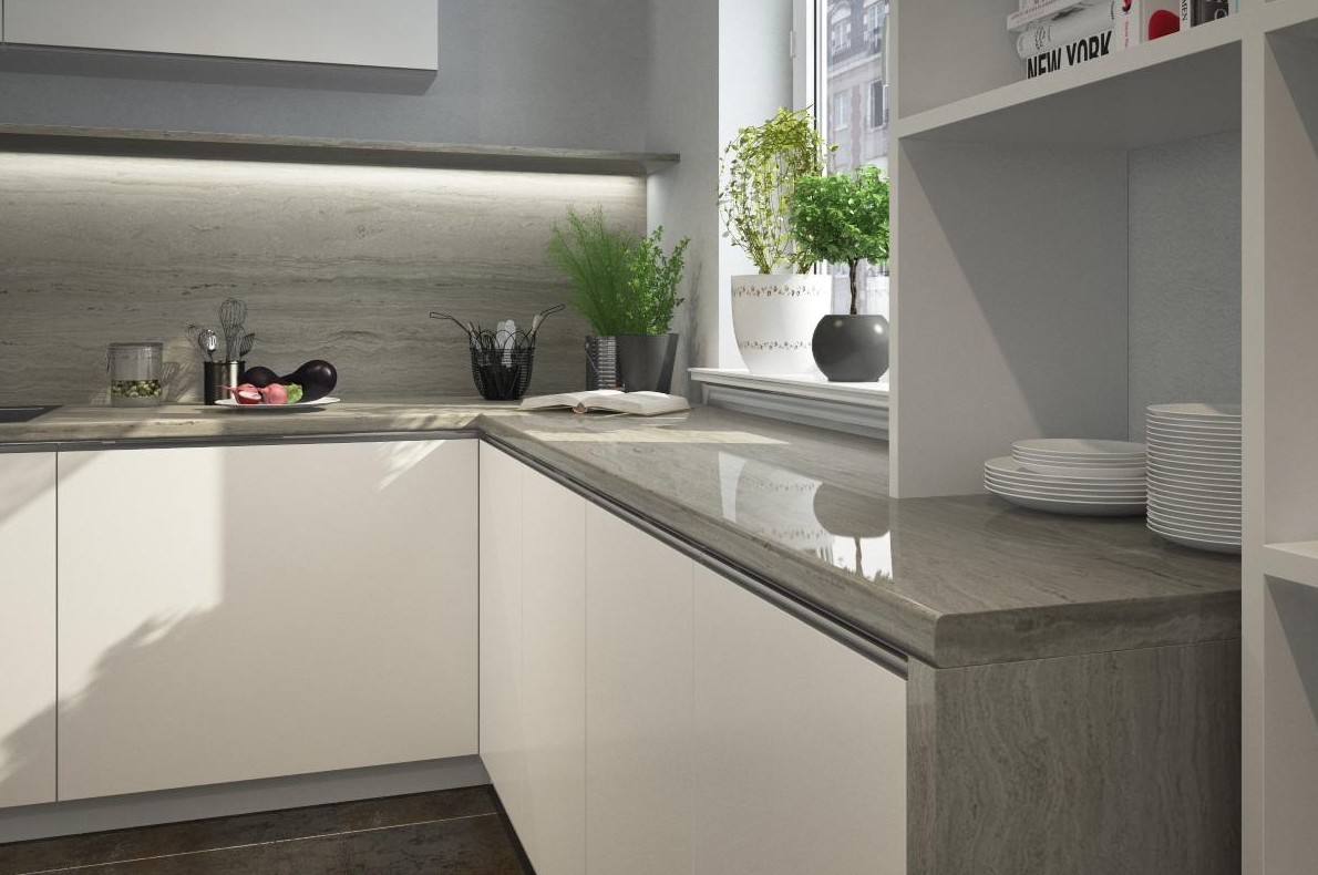 Столешница Кедр 8345/1 Травертин Серый, R9, 2U, 3050х600х40