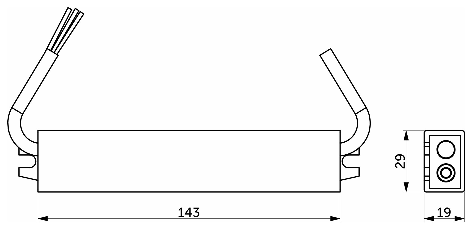 Размеры 143х29х19 мм.