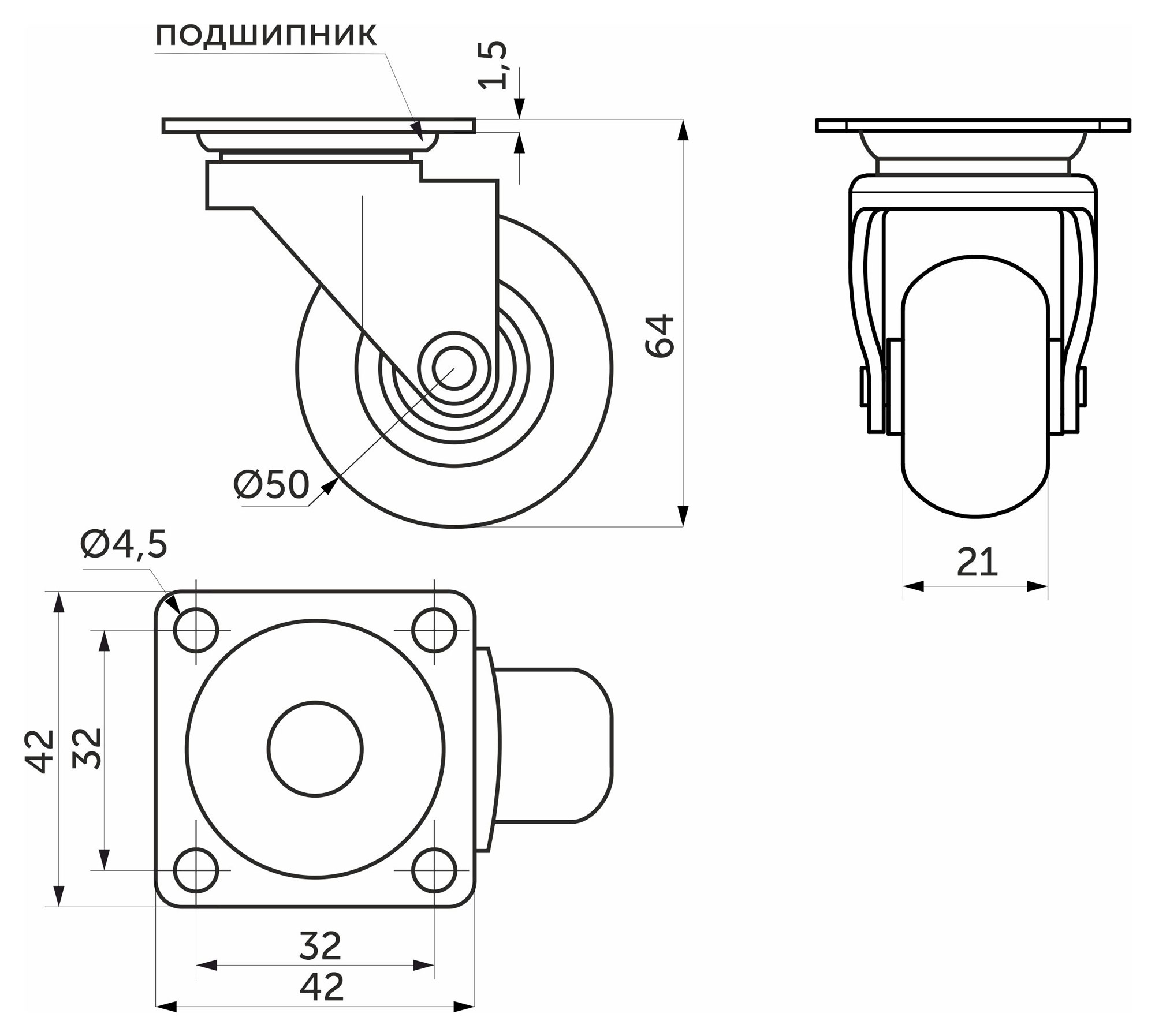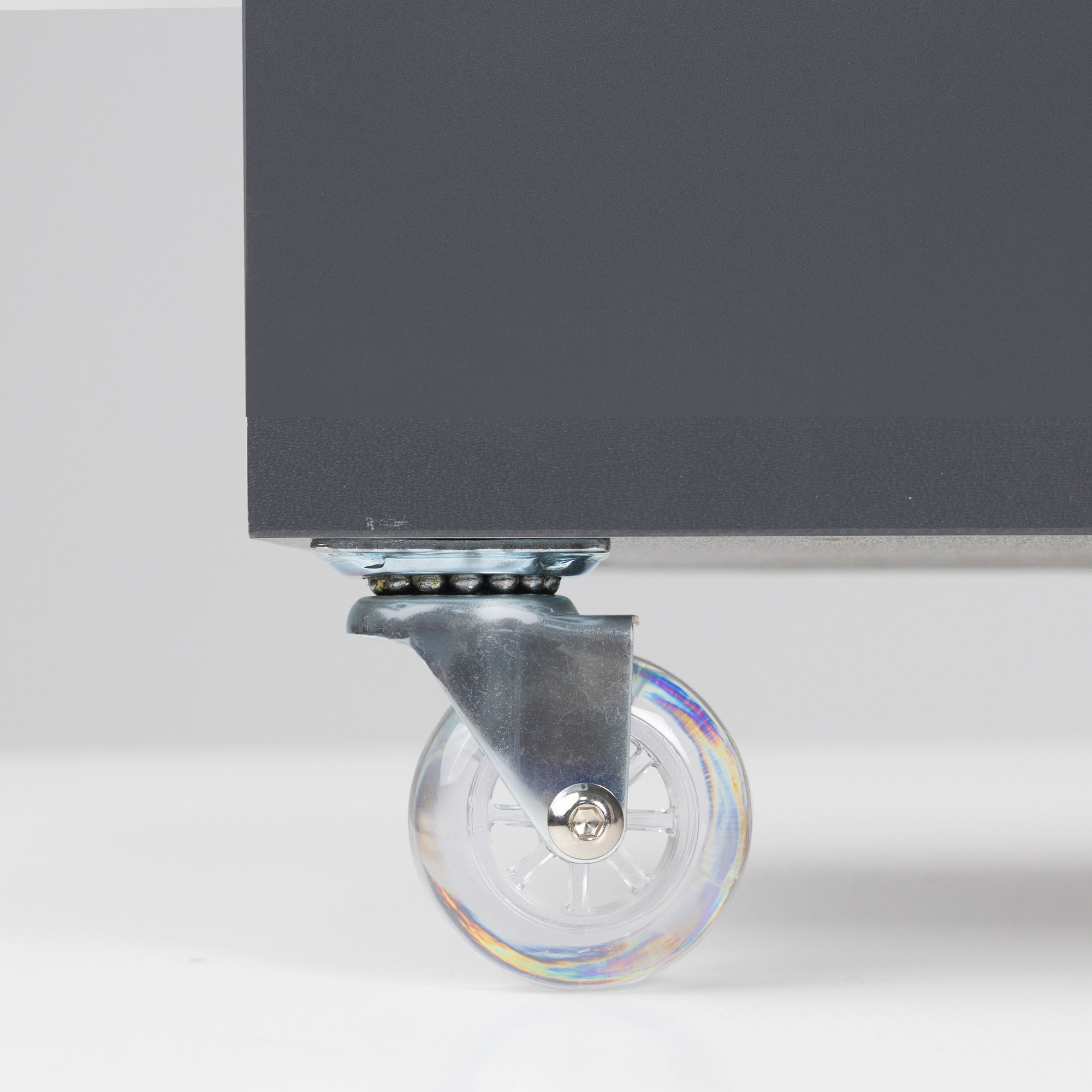 Колесо поворотное с силиконовым ободом делает выдвижение более мягким и бесшумным, не оставляет следов на полу. Рекомендуемая статическая нагрузка на 1 колесо - до 40 кг.