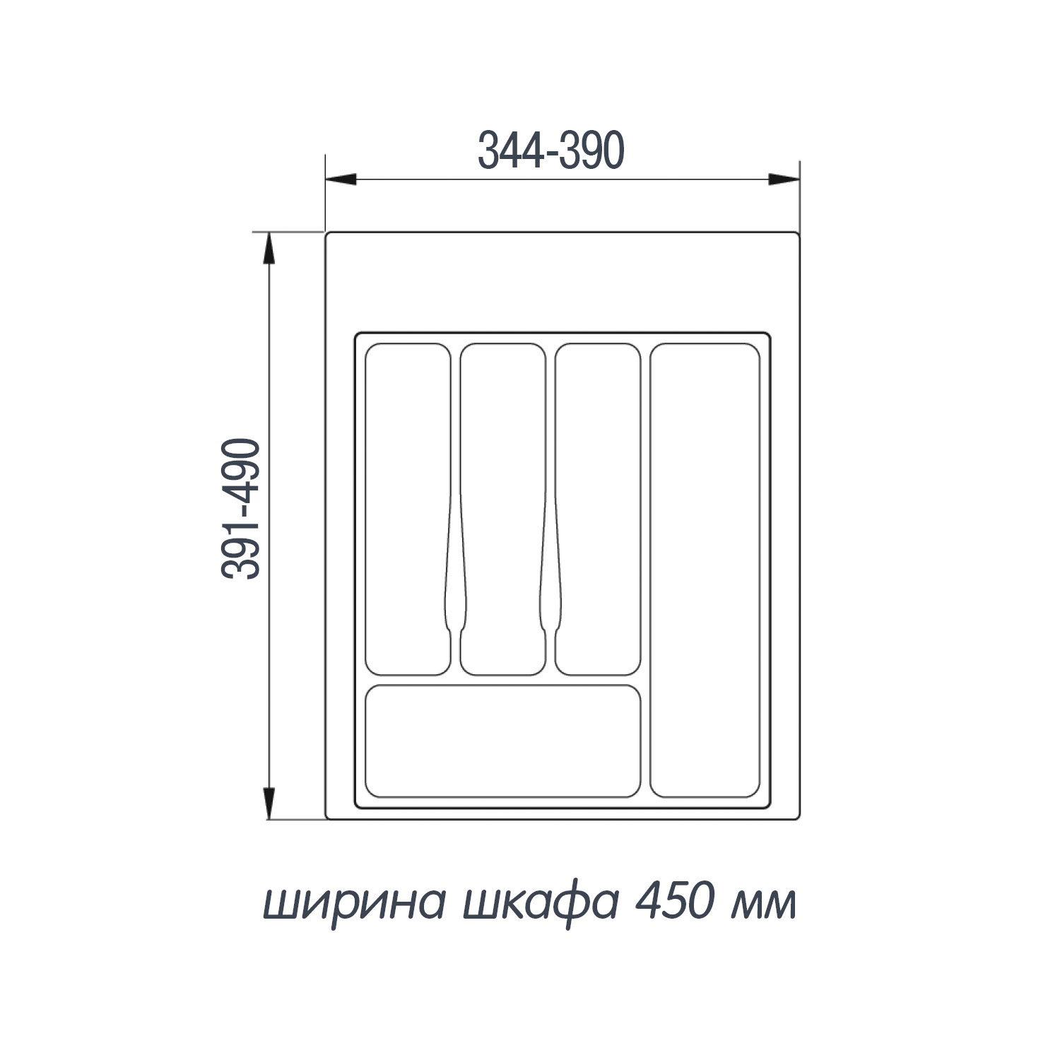 Лоток предназначен для хранения столовых приборов и кухонной утвари в выдвижном ящике.