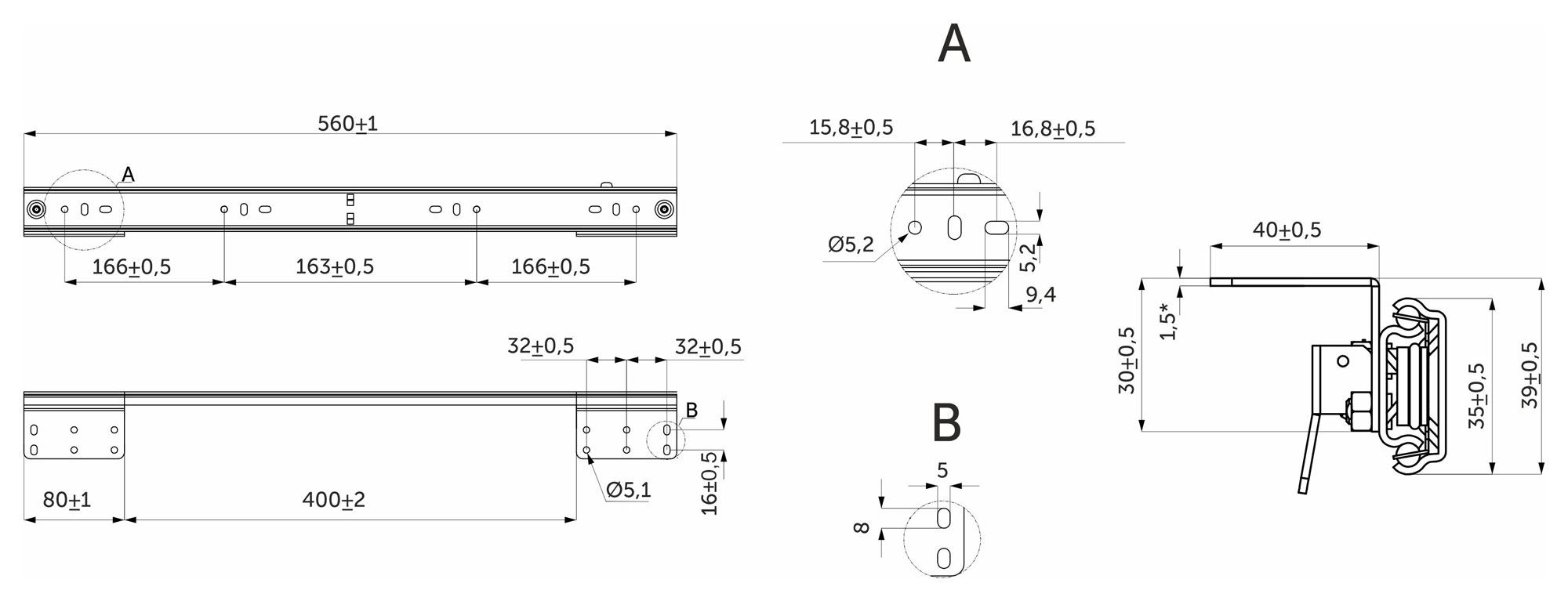 Механизм для раздвижных столов AKS L-560, внутренний синхронный, со стопором
