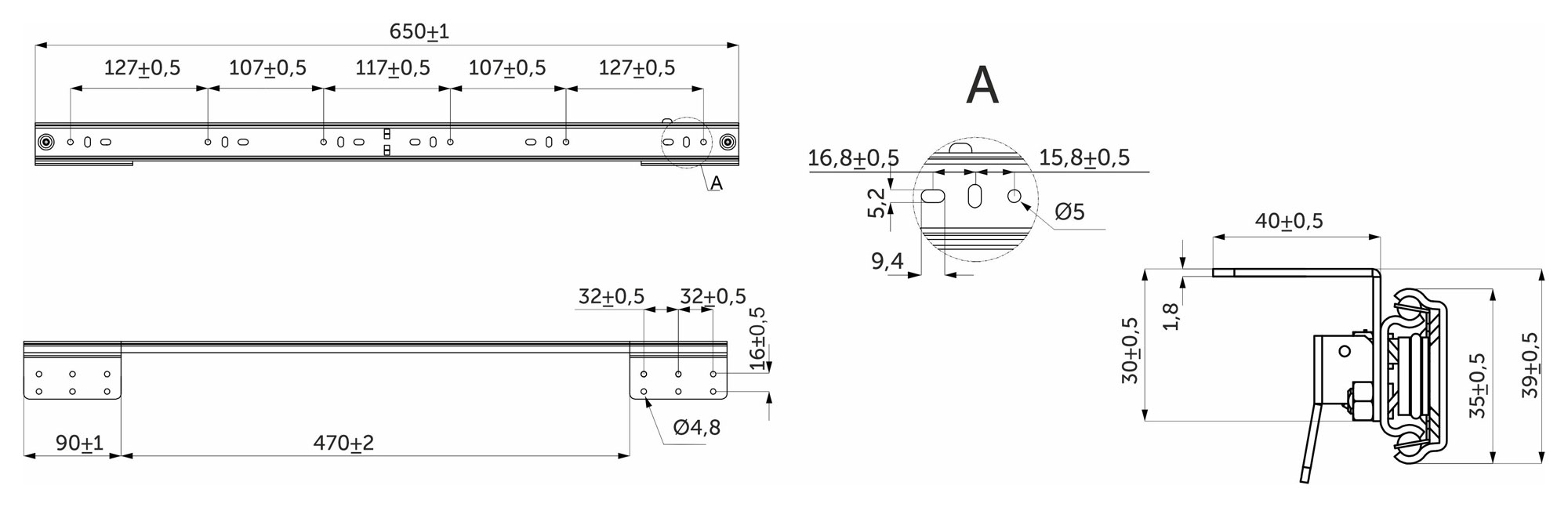 Механизм для раздвижных столов AKS L-650, внутренний синхронный, со стопором