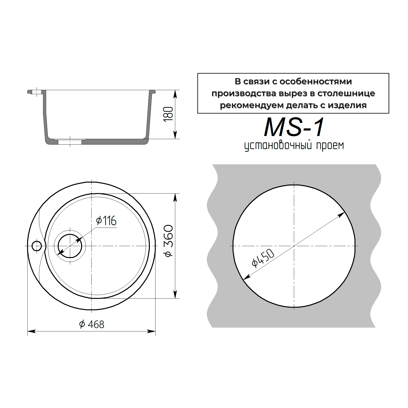- Форма мойки/раковины Круглая