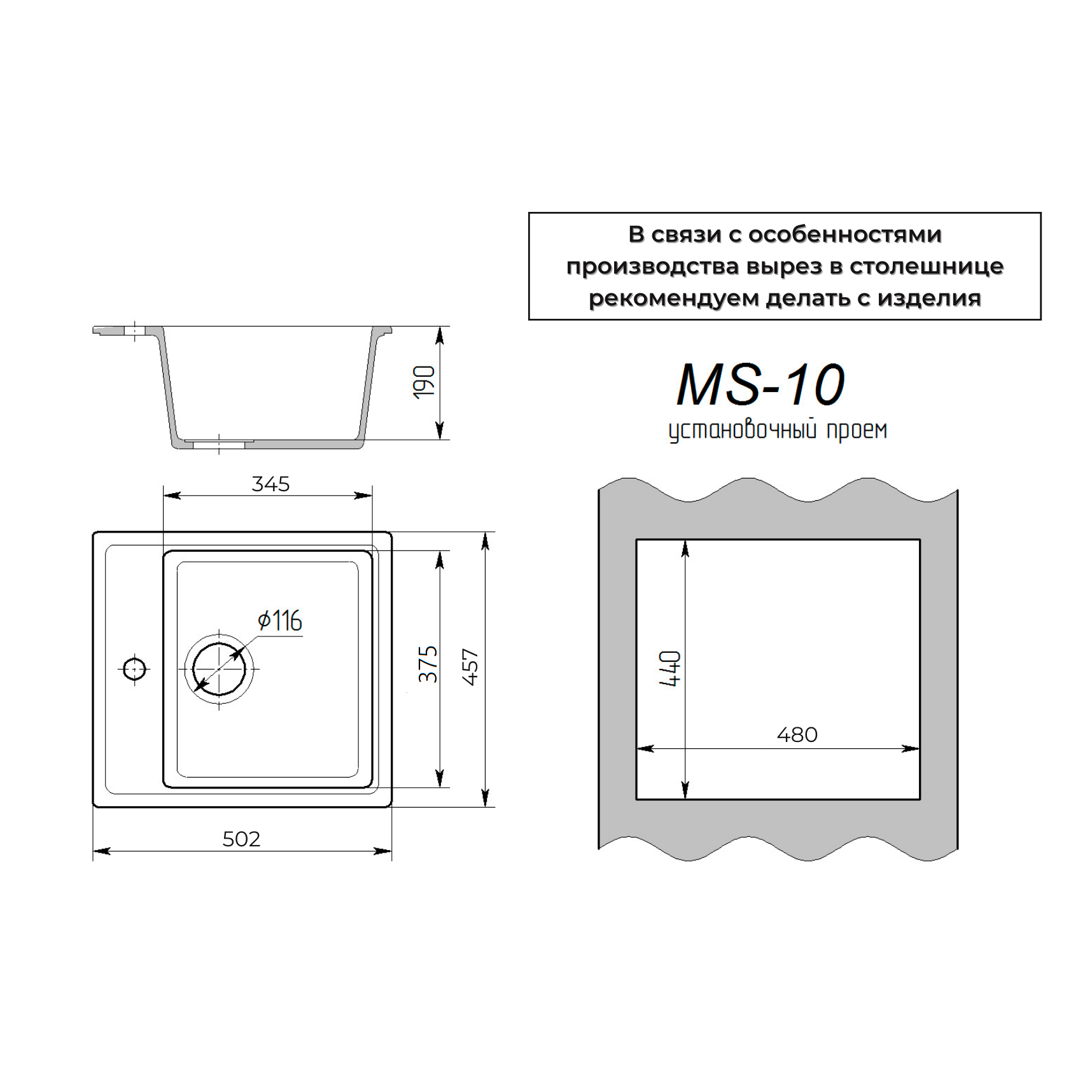 Мойка врезная MaxStone MS-10, 45.7х50.2, мрамор, песочная