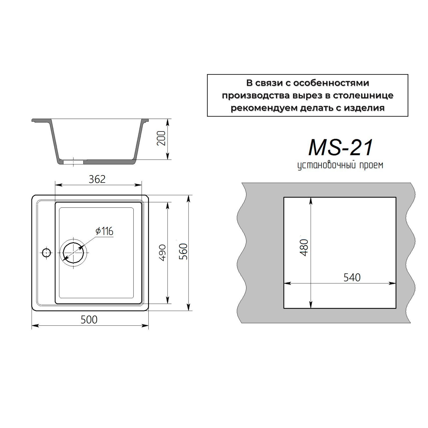Мойка врезная MaxStone MS-21, 56х50, мрамор, светло-серая