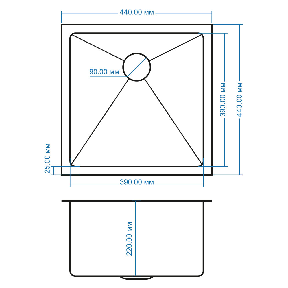 Мойка подстольный монтаж AMALET Standart 4444 Satin, 440x440, нержавеющая сталь, сатин