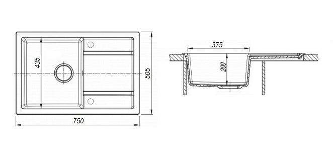 - Ширина мойки/раковины, мм 750