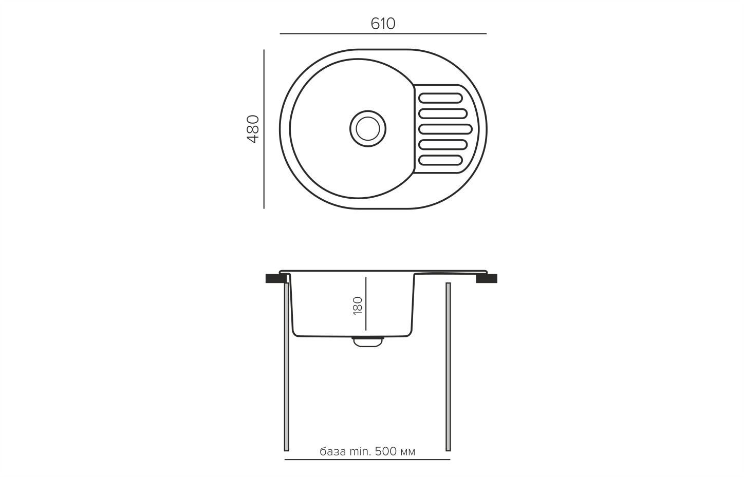 Мойка врезная Polygran QuartzBond BOND-610, 61x48, кварц, туман
