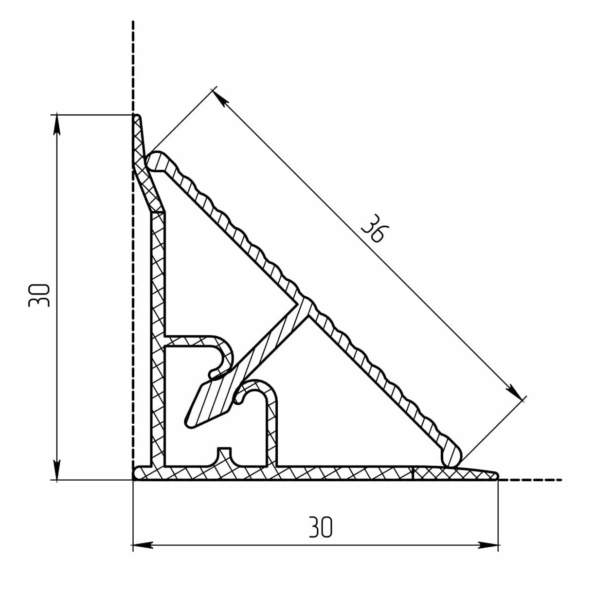 Плинтус алюминиевый треугольный Престиж ЭЛИТ-С, Рифлёный, Серебро, 3000х30х30