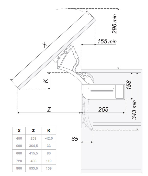 Подъемный механизм Boyard FLAP T/S20 H720-800