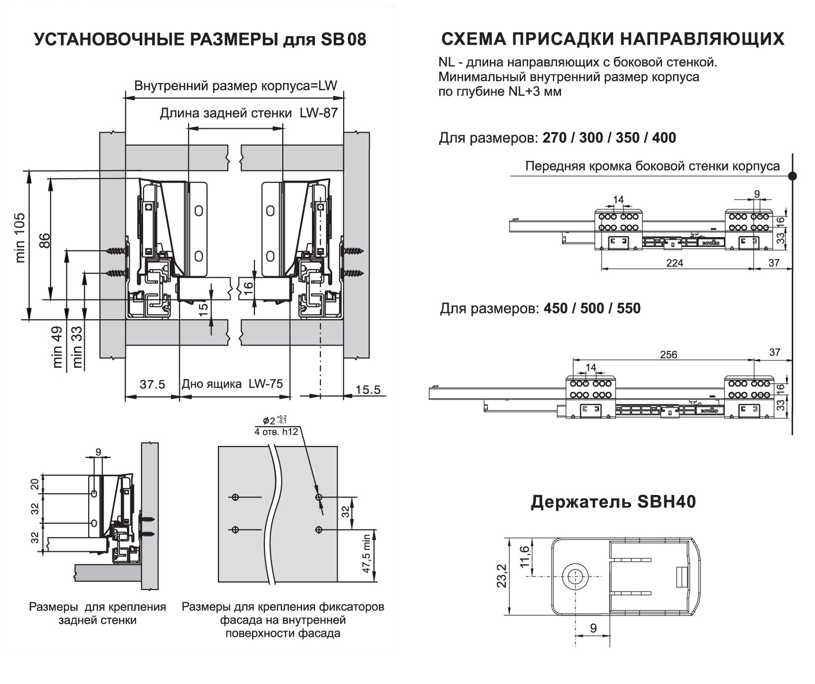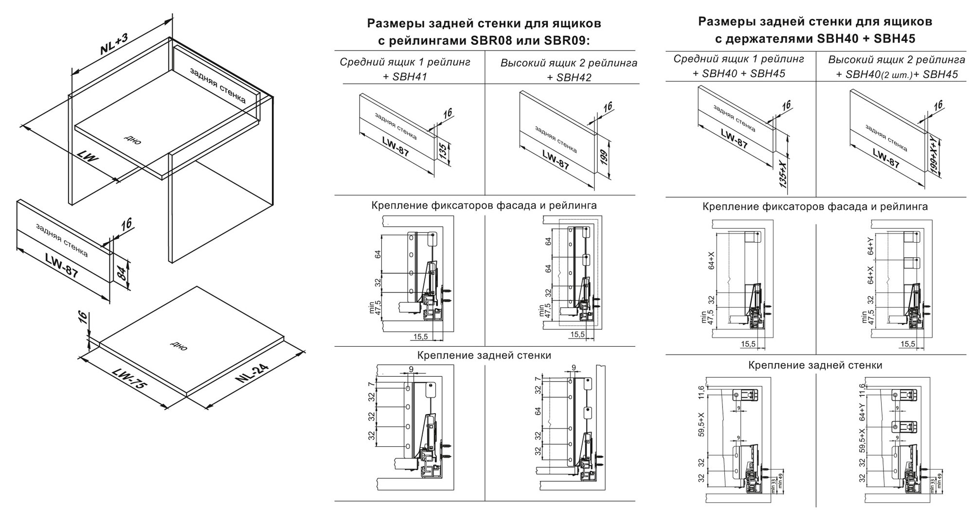 SBR09 – прямоугольный рейлинг, предназначенный для формирования выдвижных мебельных ящиков. Применяется с держателями рейлинга SBH40 и держателями задней стенки SBH61, SBH62, SBH63, SBH65 (в зависимости от выбранной высоты боковин) для формирования выдвижного мебельного ящика любой желаемой высоты с прямыми боковинами.