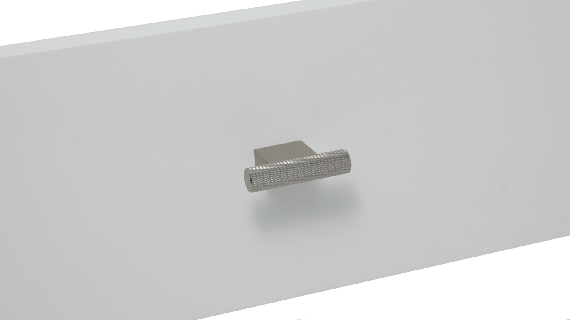 GARAGE RC325 — цельная ручка-кнопка, в которой яркое рифление алюминиевого прутка сочетается со стильными гладкими ножками.