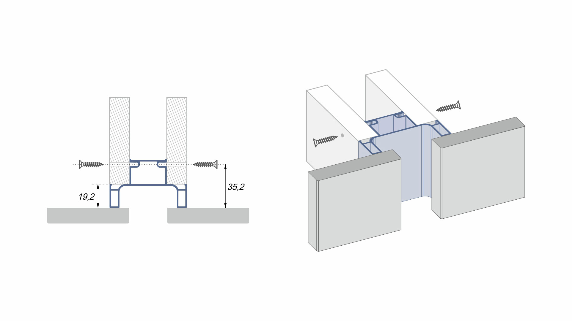 RP053 имеет увеличенную на 100 мм фактическую длину — 3000 мм. Технологический запас 100 мм учитывается при транспортировке и монтаже, защищая профиль GOLA BALANCE от внешних воздействий и обеспечивает качественный внешний вид по всей полезной длине профиля. Перед монтажом на корпус мебели технологичный запас необходимо спиливать под прямым углом торцовочными пилами (или на станках) с установленными дисками для резки алюминиевого профиля.