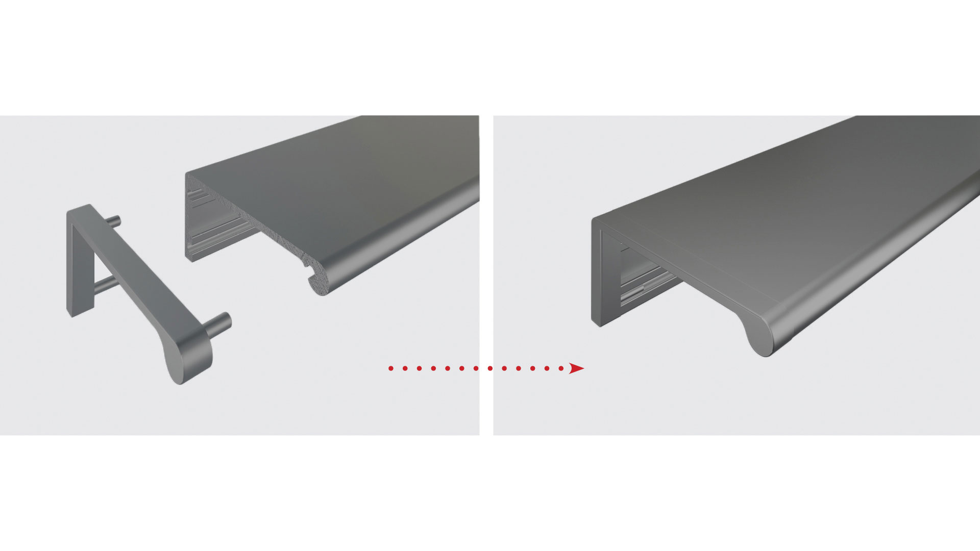 Ручки RP101 выполнены из алюминия и подойдут для фасадов толщиной до 18 мм. Профиль крепится на саморезы, которые приобретаются отдельно и выбираются в зависимости от толщины плиты.