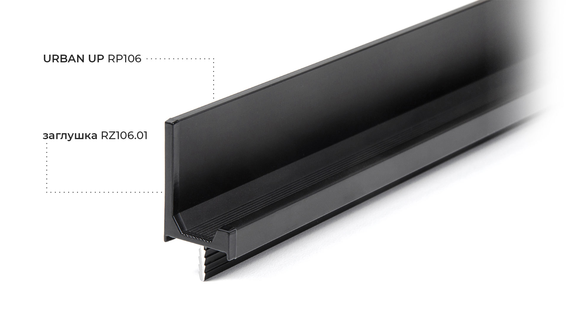 Заглушки RZ106.01 представлены в качестве дополнительного аксессуара и приобретаются отдельно от профиля.