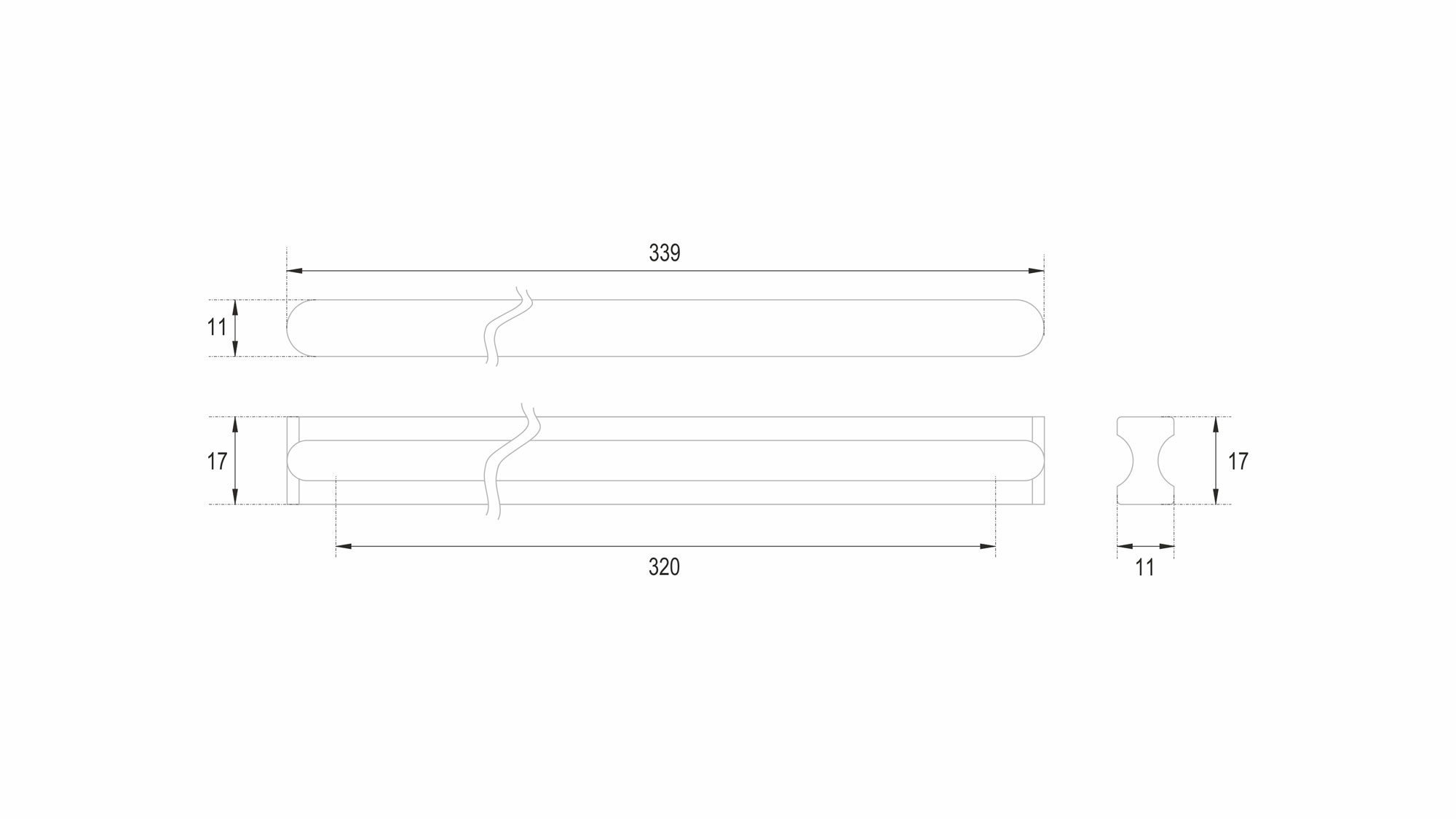 Ручка представлена как в небольших размерах от 128 мм, так и в форм-факторе 960 мм. VOLNA RS065 можно устанавливать не только вертикально, но и горизонтально, для завершённого образа мебельного гарнитура.