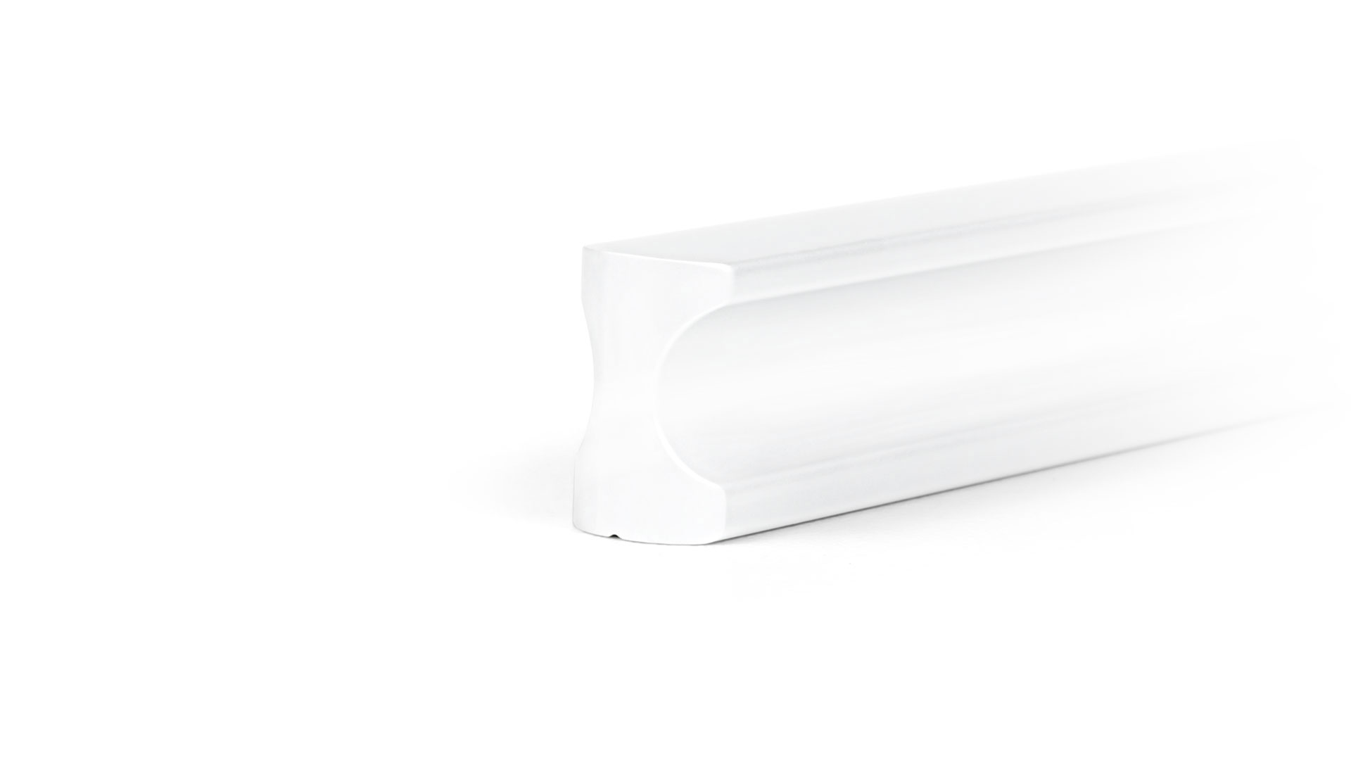 Ручка представлена как в небольших размерах от 128 мм, так и в форм-факторе 960 мм. VOLNA RS065 можно устанавливать не только вертикально, но и горизонтально, для завершённого образа мебельного гарнитура.