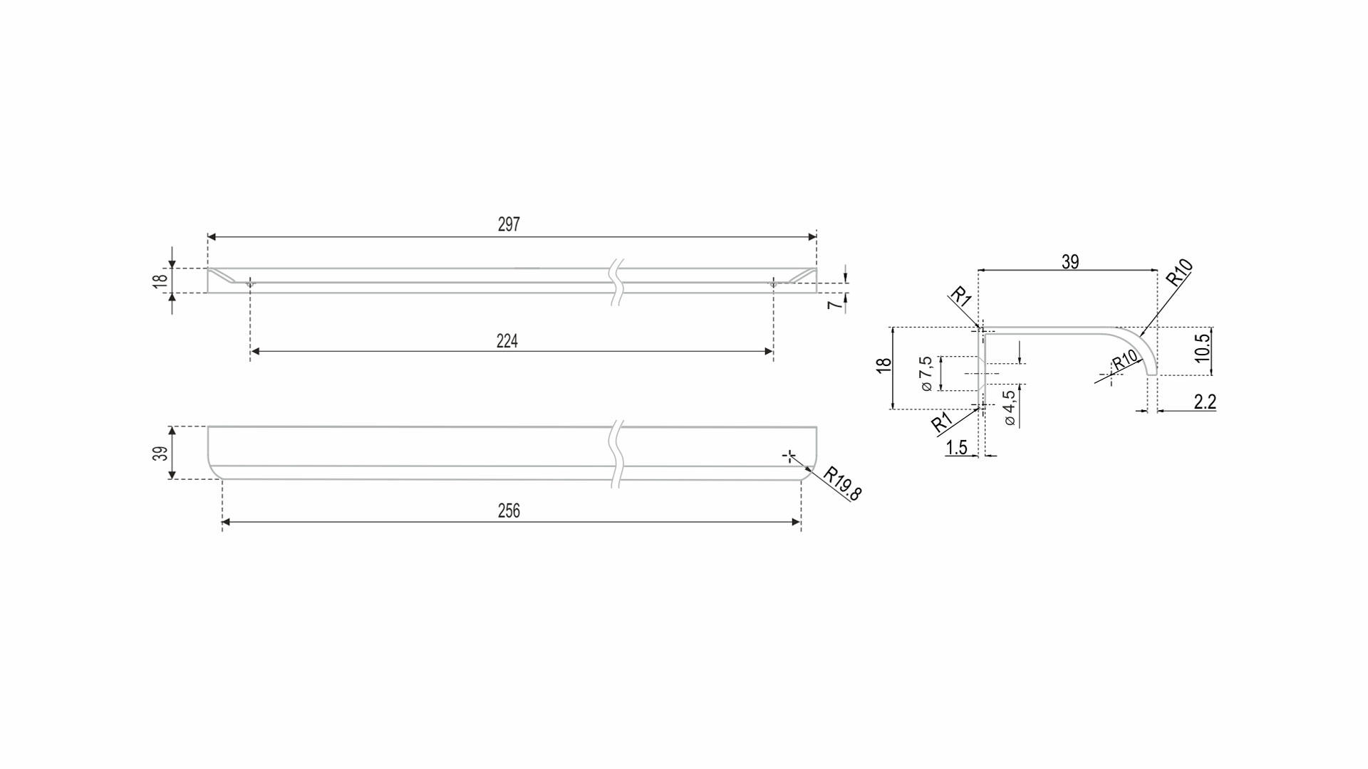 RT110 подходит для установки на фасады толщиной до 18 мм и крепится накладным способом, что значительно облегчает установку и не требует дополнительной работы с торцом.