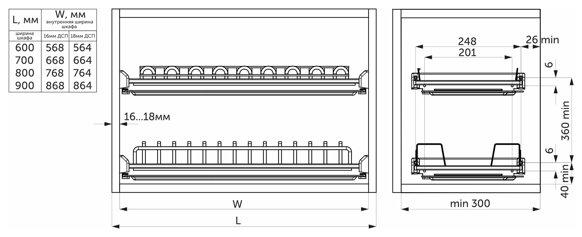 - подходит для установки в ящик с ДСП 18 мм и ДСП 16 мм.